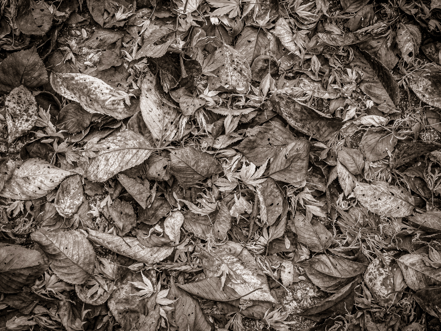 When I pulled this up on the computer, I immediately realized the wrong thing was dominating the image. A simple choice to convert to b/w so all the attention in now on the textures of the leaves.