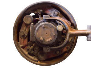 This subject is a large flywheel on an old threshing machine I found in a farming museum in North Dakota.