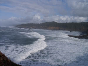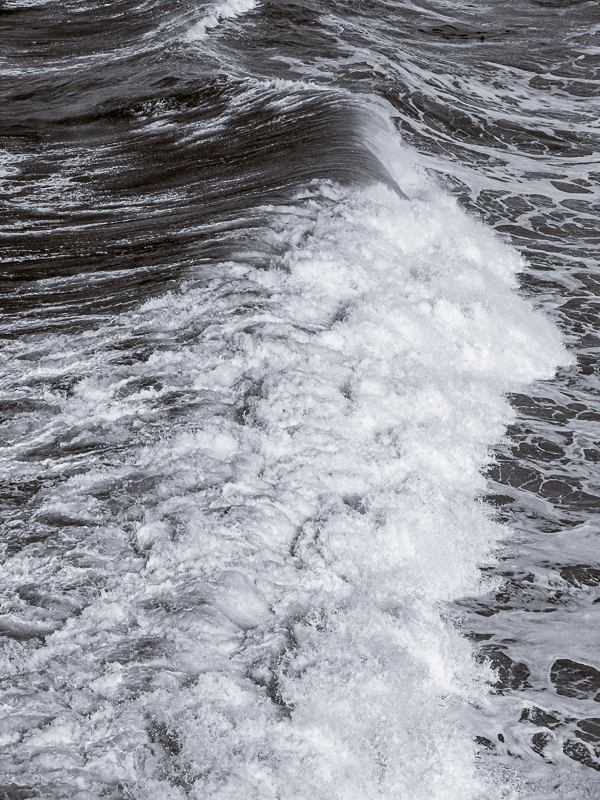 Listen to you inner voice. This scene was not about the land, but rather all about the crashing waves. Fortunately, I found the one at left in my Lightroom catalog from another day and another location that captures that rolling power of the water. Note this is a split toned image — neutral dark tones and slightly blue highlights.