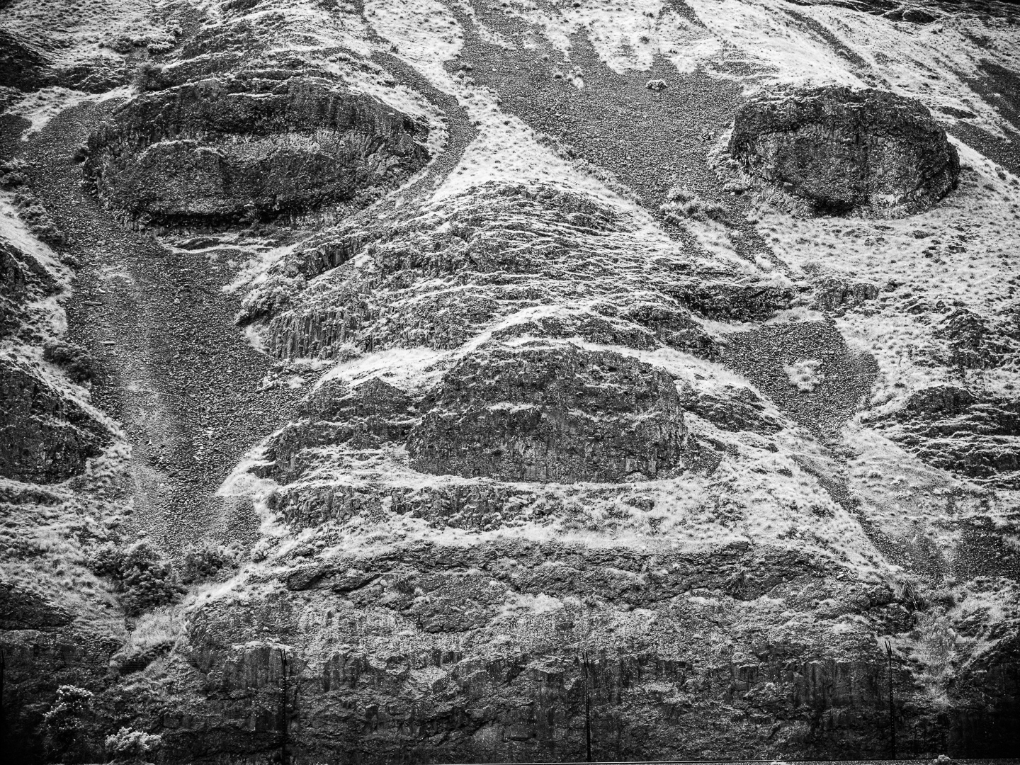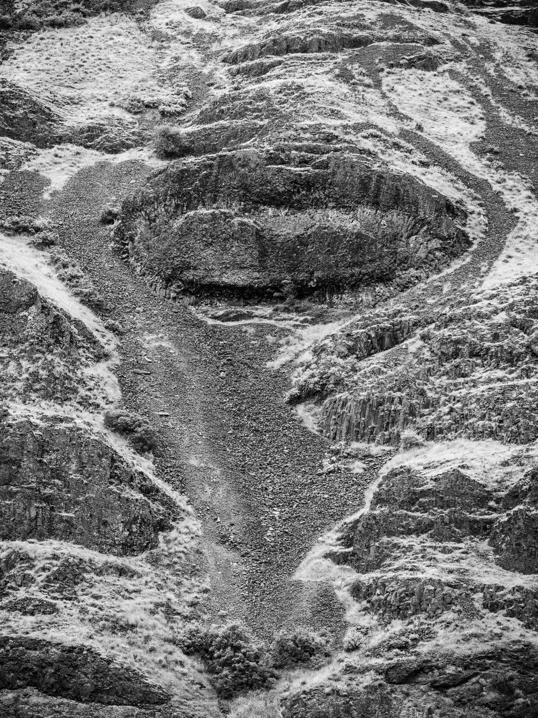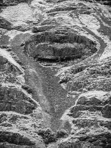 As I looked at this hillside for a few more minutes, searching for another composition, I suddenly did a Rorschach projection and saw a face in the rocks. Can you see it? The problem with this kind of recognition is that once you see it, you can't un-see it. So, why not photograph it just for fun. Should I title this one, "Winking Hillside"? Or is that too much?