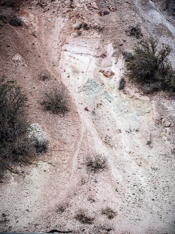 There is something fascinating in the desert soil. This is by the side of the road where I'd stopped to eat a sandwich. I kept looking and after finishing my lunch, I pulled out the camera. Priorities.