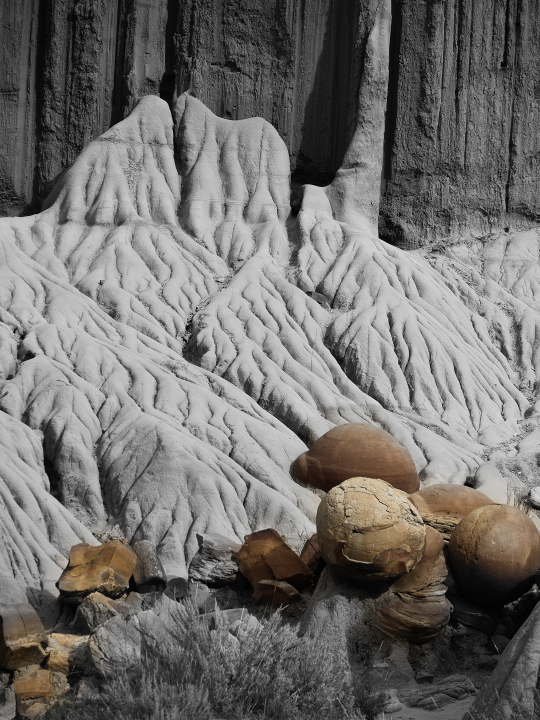 Very interesting grooved bentonite with oval, egg-like concretions.