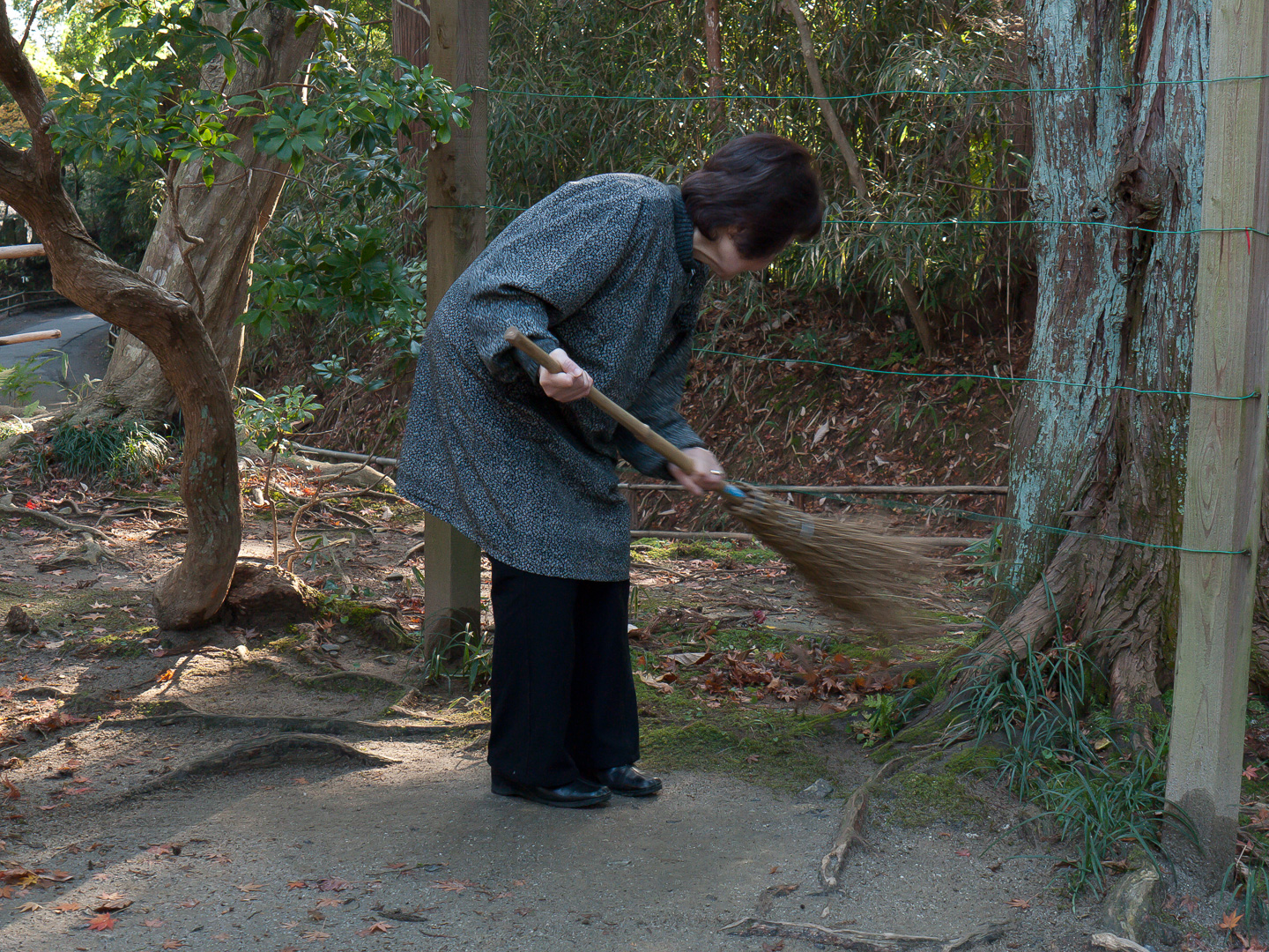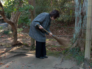 I photographed this woman sweeping the fallen leaves and made a quick and simple snapshot.