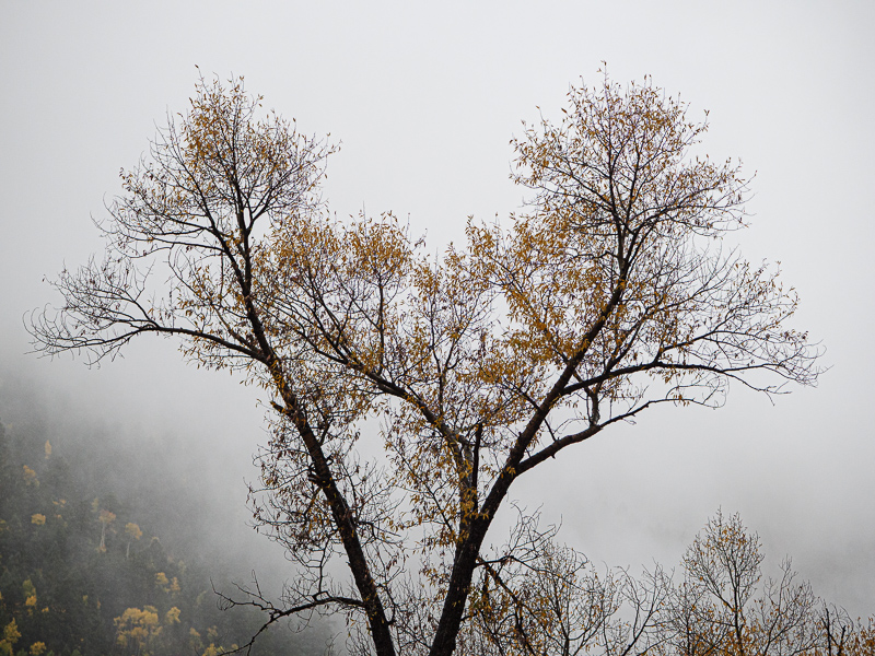 Fall colors are a favorite for many photographers, myself included. Eventually, however, splashes of yellow after splashes of yellow can get a little repetitious. That's when to start looking for some additional element that goes beyond more or more intense yellows. One of my favorite plus elements is atmosphere — clouds, mist, fog, haze — anything that makes the air visible. As Jay Maisel said, "Never trust air you can't see."