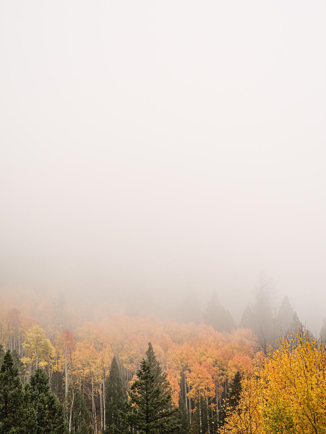 Fall colors are a favorite for many photographers, myself included. Eventually, however, splashes of yellow after splashes of yellow can get a little repetitious. That's when to start looking for some additional element that goes beyond more or more intense yellows. One of my favorite plus elements is atmosphere — clouds, mist, fog, haze — anything that makes the air visible. As Jay Maisel said, "Never trust air you can't see."