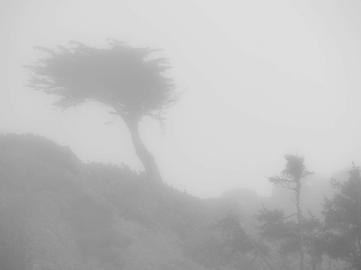 Sometimes, it's possible to simply overthink an image. I was trying too hard to make it look like I wanted. Nature's foggy reality was way better then my over-processed attempt to bend the scene to my will.